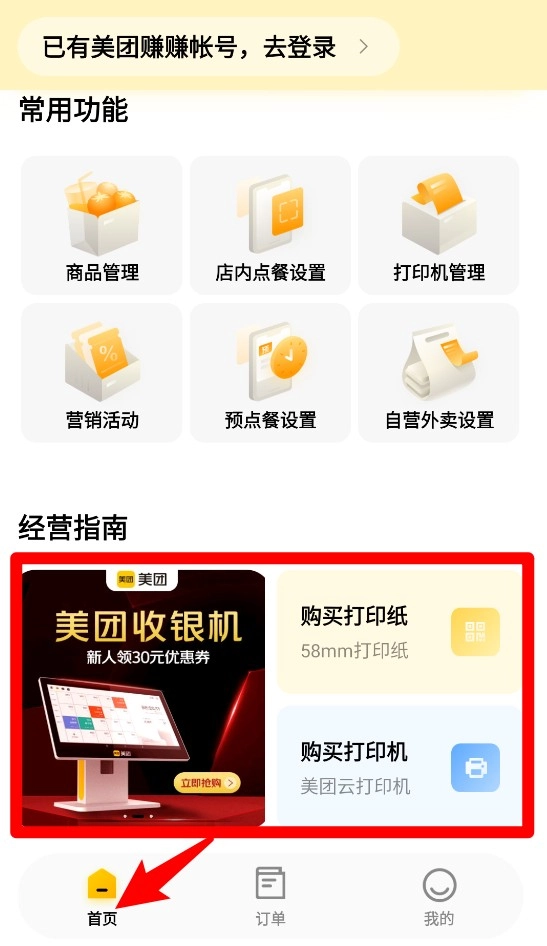 在首页下方能够浏览经营指南模块,这里会提供设备购买的入口以及经营优化方面的建议。