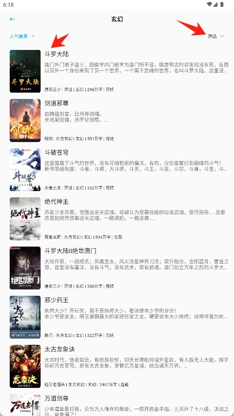 在分类列表的“玄幻”类别里找到想要的书籍并点击,就能进入这本书的信息详情页面。