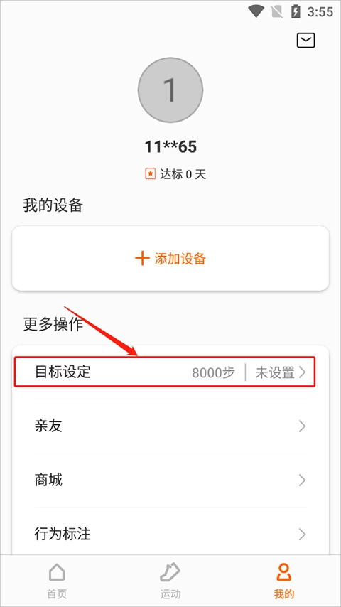 打开Zepp Life应用,进入后点击“我的”,接着找到“目标设定”选项并点击它。
