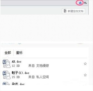 若进入的是文档处理界面,可点击右上方的云朵图标,在文档的漫游文档下方或许能找到已加入收藏的云文档。不过使用此方法的前提是,该文档至少已在手机上打开过一次。