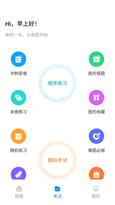 3.这款App具备多种练习模式,包含模拟考试、历年真题练习、每日一练、快速练习以及考点练习等。