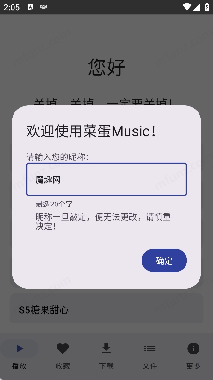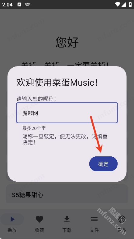 填写昵称后点击确定(昵称一旦确定,将无法修改,请谨慎决定!)