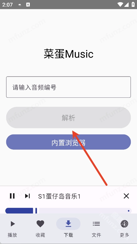 要是在菜蛋Music音乐盒里没找到你想要的音乐,别着急!它的界面自带浏览器功能,点击后输入你想找的音乐名称(比如“S2生存赛1”),就能快速搜索到目标音乐,点击对应的链接就能把它保存到手机里随时播放啦!