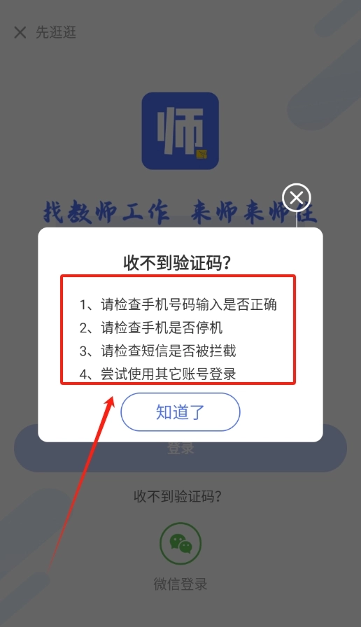 2、要是收不到验证码,别着急,点击登录页面底部 “收不到验证码” 选项,查看具体原因并尝试解决 。