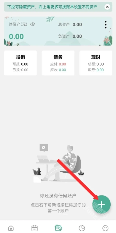 打开一木记账的主界面后,点击页面底部的“资产”图标。
