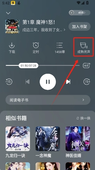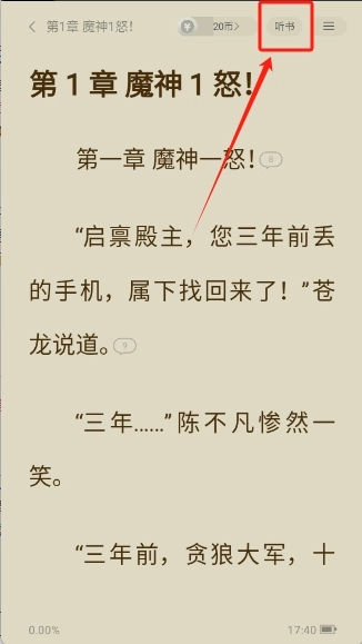 点击右上角的“听书”即可进入听书界面