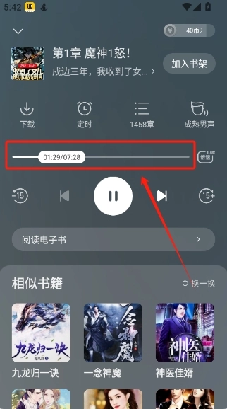 用手指滑动可以调节听书章节进度