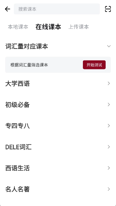 打开西语背单词应用后,你能在首页挑选适配自己的西班牙语课本。