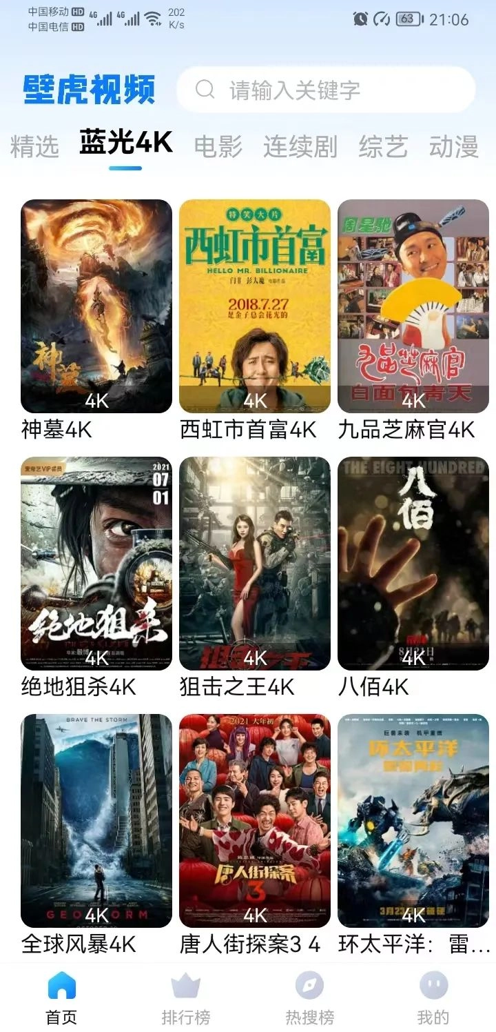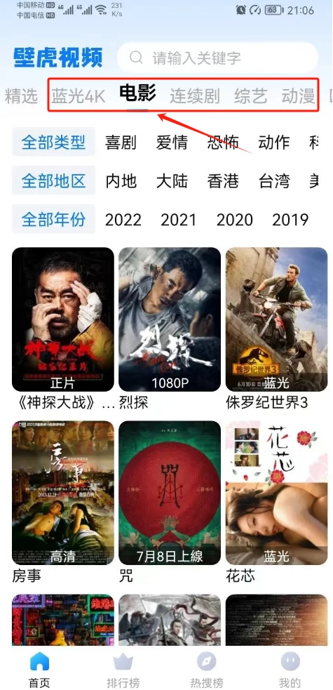 打开壁虎视频后,你可以观看电影、美剧、综艺以及日漫等内容。