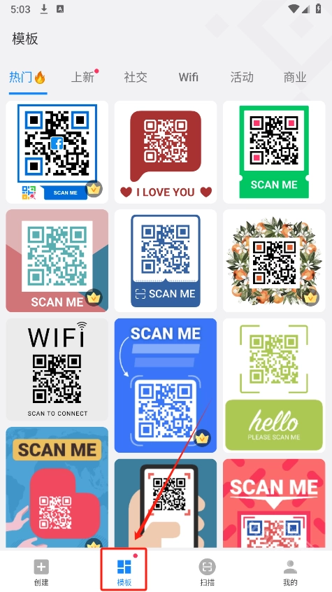点击最下方的“模版”界面,这里为大家提供了各种各样的二维码模版,选择你想要的模版,就能快速进行制作。