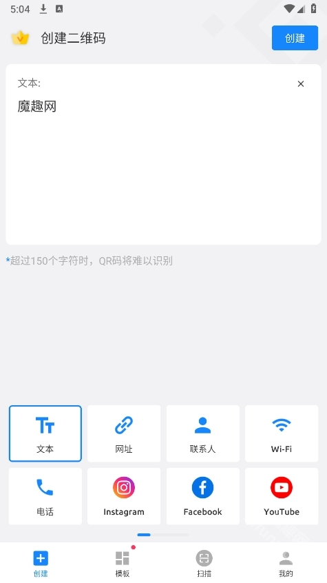填写完之后点击右上角的“创建”即可生成专属二维码