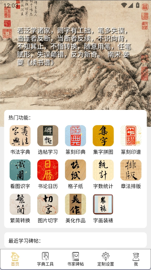 不厌书法是一款面向书法爱好者与学习者打造的软件,汇聚了海量碑帖资源,并配备多种实用学习工具,为用户搭建起便捷高效的书法学习平台。无论身处何地,都能借助碎片化时间开展书法练习,尽情领略书法艺术的独特魅力。