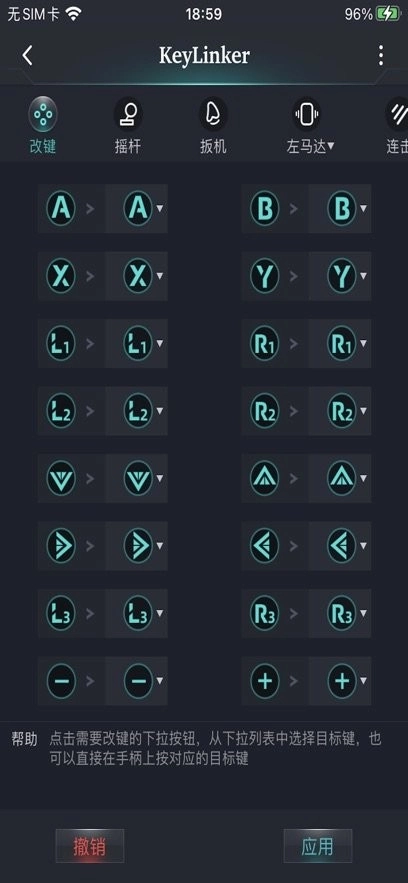 打开手机蓝牙功能,待其与手柄设备成功连接后,即可对该手柄的按键参数进行设置。