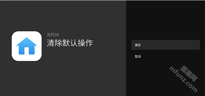 之后操作遥控器,按下上面的home键(当贝遥控器上对应的是小房子图标),此时会弹出“将当贝OS设为主屏幕应用”的提示,接着选择下方的【当贝桌面】选项,再点击【始终】按钮即可。