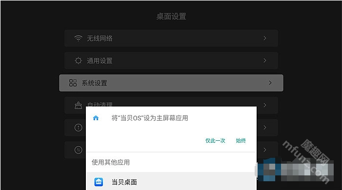 到这一步设置就完成啦,你可以关机重启设备,看看桌面是不是已经切换成【当贝桌面】系统了。