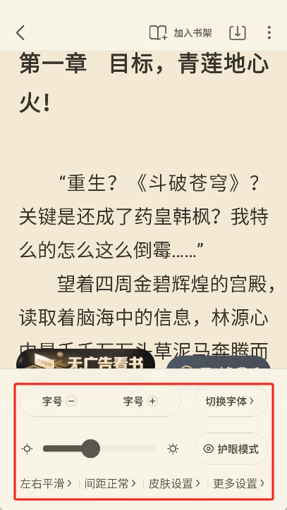 阅读设置:阅读小说时,能够依据个人喜好对字体大小、背景颜色、亮度等阅读相关设置进行调整。