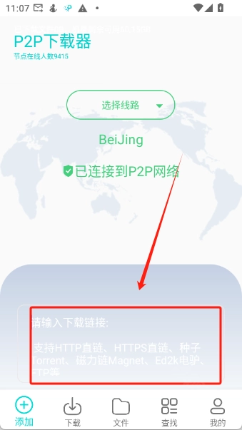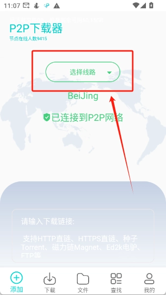 选好线路后,在下方的输入框里填入链接即可,这里支持多种链接类型,像HTTP直链、HTTPS直链、种子Torrent、磁力链Magnet、Ed2k电驴以及FTP等都能兼容。