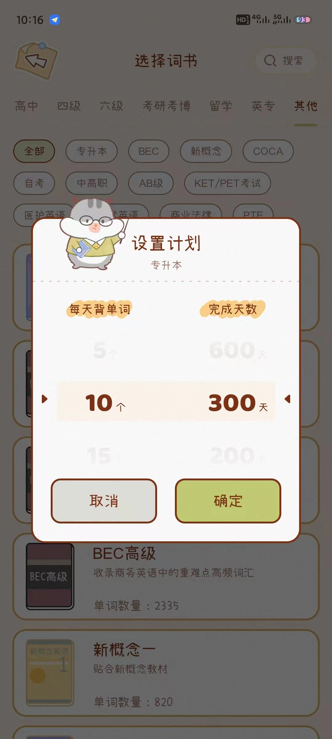 设置学习规划:在应用里用户能够挑选契合自身的词汇本,并且设定每日背诵单词的数目以及预计完成的天数。