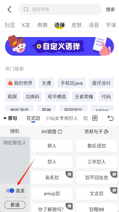 怼人功能:支持选择怼人模式,点击语弹图标后,挑选合适的怼人话语即可发送。