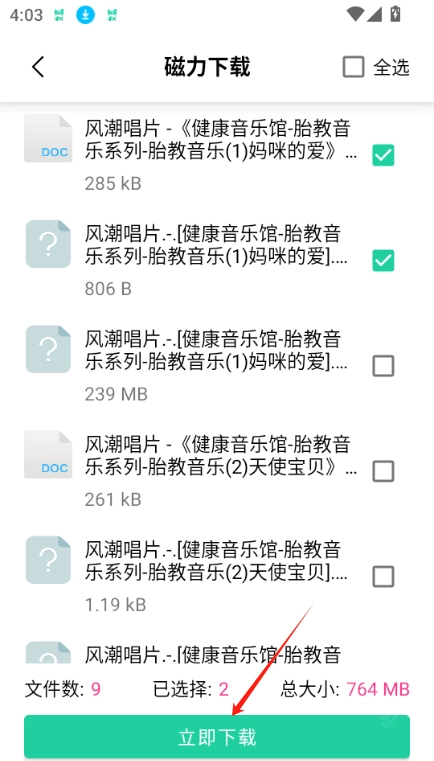 输入链接后,薄荷会自动解析该链接并展示可供选择的文件列表,你可以从中挑选需要的音乐文件。