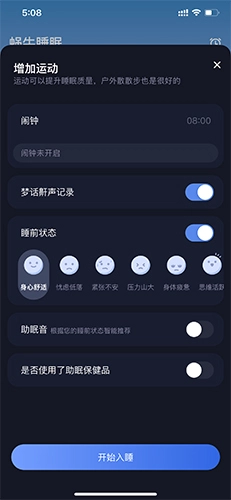 设置完成后回到“监测”页面,点击“开始睡眠”按钮。