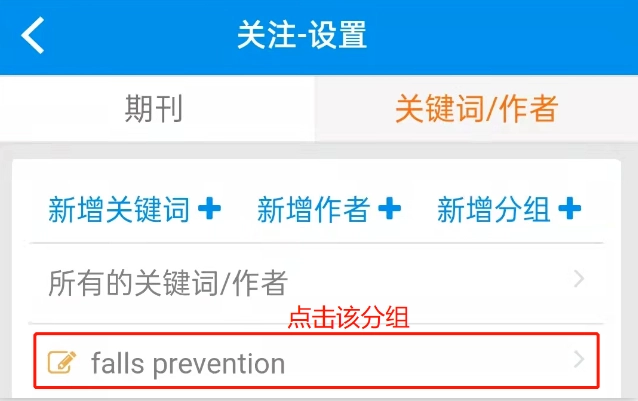 第二步:同上。根据需要选择新增关键词或作者或分组。以新增关键词为例;