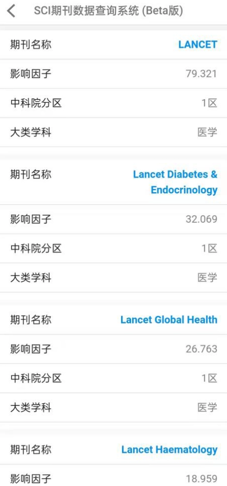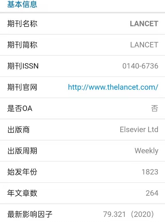 第二步:进入查询系统并搜索期刊信息,这里以《柳叶刀》(lancet)为例。