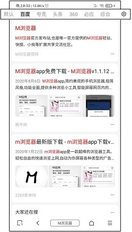 m浏览器是一款极为纯净高效的手机浏览器应用,用户能在此享受到清爽无扰的搜索体验,软件支持自定义个性化的功能与界面设置,还提供小程序、主题、搜索等丰富扩展功能供用户自主选用,全程使用打扰。