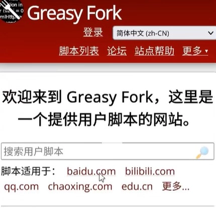 找到常用的脚本网站并点击打开,在这里您能获取到网课、追剧、听音乐等各类实用脚本。