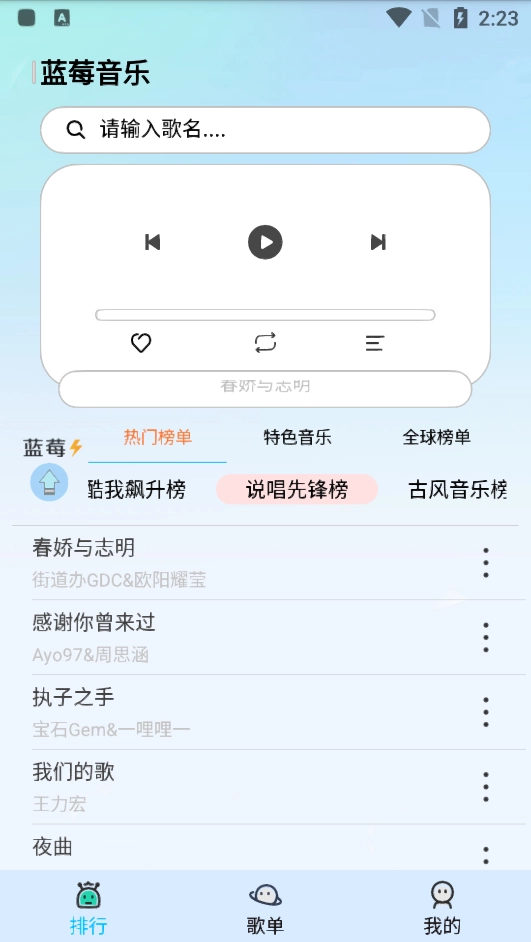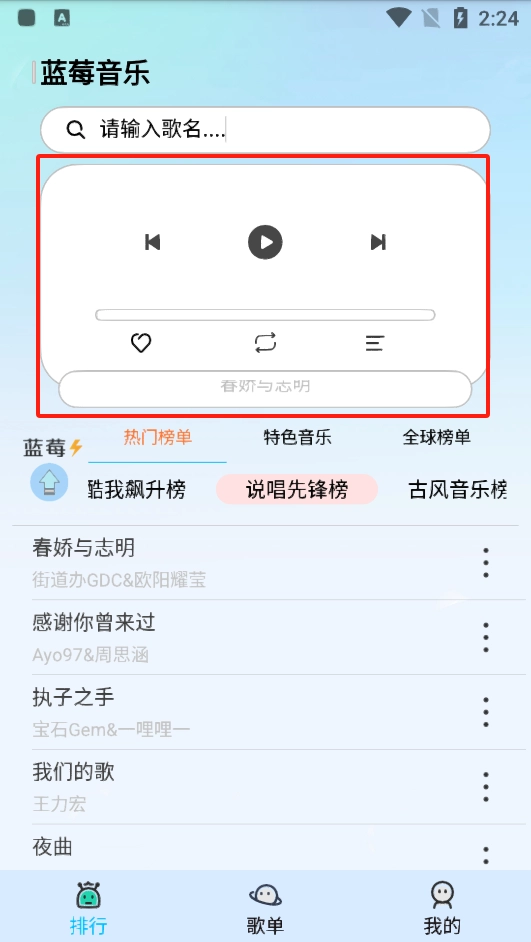 这款应用凭借全面又便捷的畅听模式,成功俘获了我的喜爱。它不但满足了我对音乐的各类需求,还借助丰富的曲库与多样的音乐类型,让我得以探索并沉浸于不同风格的歌曲之中。尤为值得称赞的是,蓝莓音乐配备了免费的歌曲库和排行榜,方便用户轻松挑选心仪的音乐,尽享在线一键听歌的便捷体验。