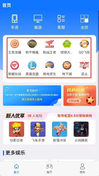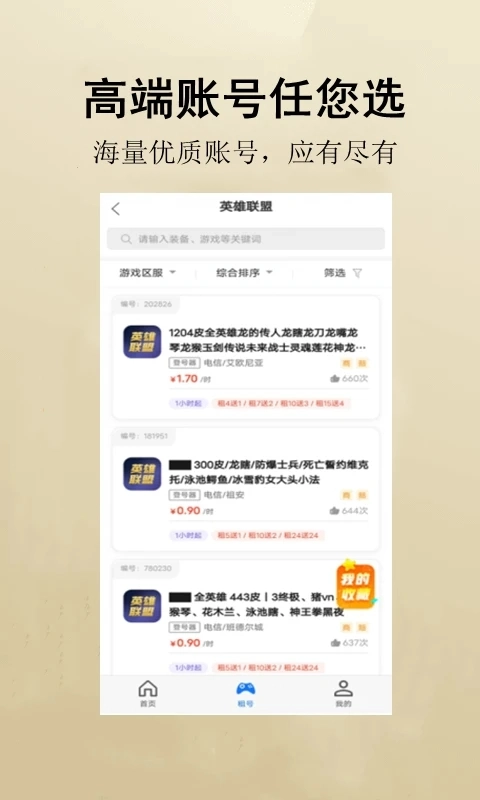 租号游是一款为游戏爱好者量身打造的软件,提供全面的游戏账号租赁服务。用户能借助这个平台轻松租用各类热门游戏的高级账号,像《英雄联盟》《绝地求生》等,以获得更优质的游戏体验。平台会保障每一位玩家的合法权益,进而带来更出色的游戏体验。