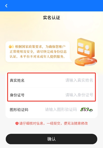实名认证:请填写真实姓名与身份证号码,随后通过人脸识别校验,以此完成实名认证流程。