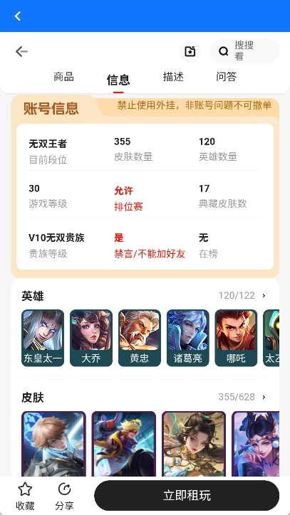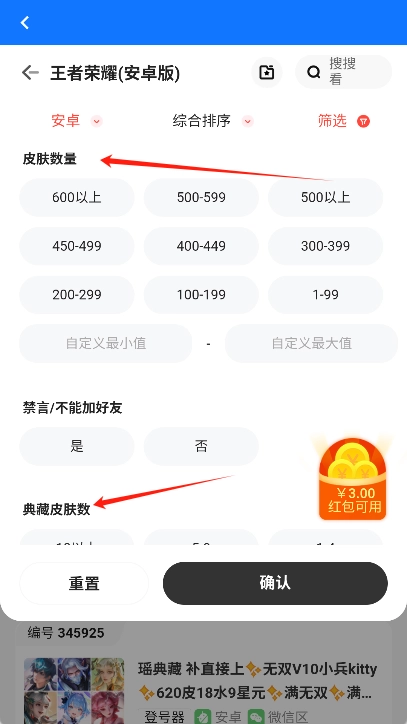 筛选账号:选定游戏后,可依据自身需求筛选账号,比如段位、皮肤数量、英雄数量等。