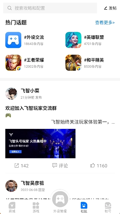 外设管理:支持一键连接与管理飞智外设,全流程连接操作可在10秒内完成。