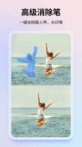 高级消除笔:只需一键操作,就能轻松去除画面中多余的人物、水印等各类干扰元素。
