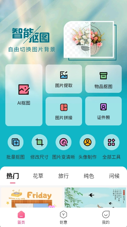 抠图换背景功能:支持用户便捷地替换图片背景,可按需选择人像抠图、物品抠图模式,还能进行批量抠图操作。