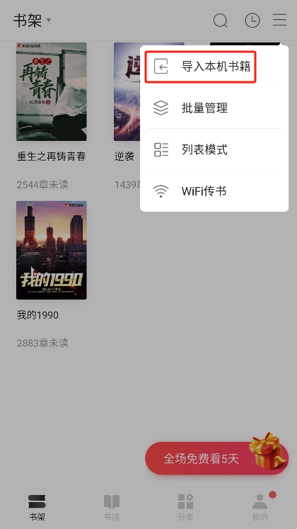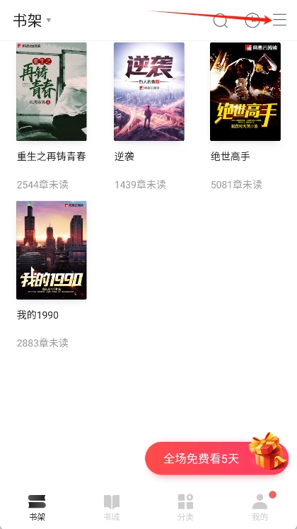 要访问本地书籍,可在书架界面点击右上角的三条横线图标。