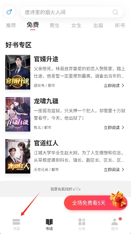 打开应用进入主界面后,找到并点击“书架”选项,即可进入书架。