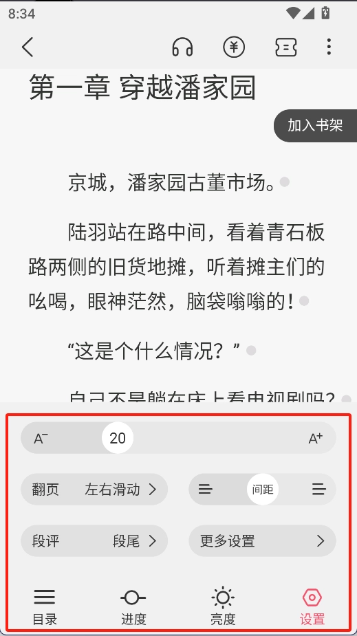 阅读设置:在阅读界面能够调整字体大小、背景颜色等阅读相关设置,从而获得更舒适的阅读感受。