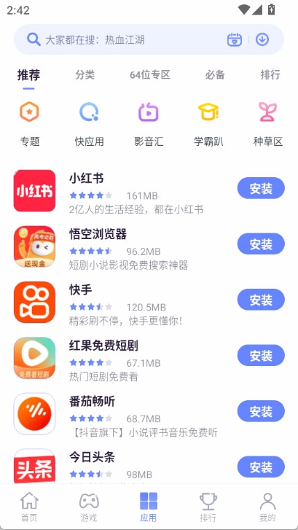热门应用推荐:为您实时推送当前最火的应用,还设有丰富多彩的特色专题,助力您发掘更多好玩又实用的应用。