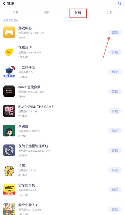 接下来选择“卸载”选项,点击应用程序右侧对应的卸载按钮,就能完成该应用的卸载操作。