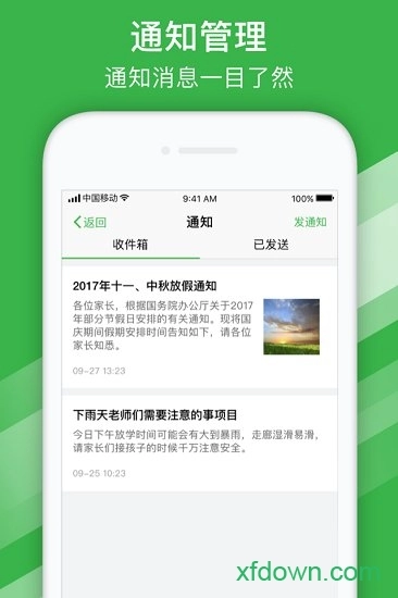 支持文字、图片、语音、附件等多种内容的发送形式,同时还保留了短信抄送的功能。通知群发给家长后,老师可通过“收件人明细”查看家长阅读情况。