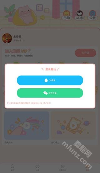 用户在本站打开软件后,可点击右下角的“我的”,接着点击上方的“未登录”按钮进行账号登录,选择QQ或微信登录方式即可。