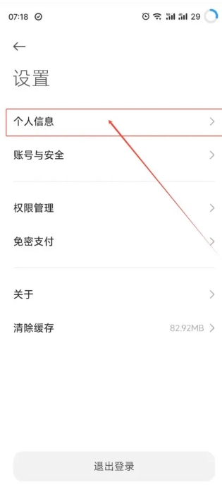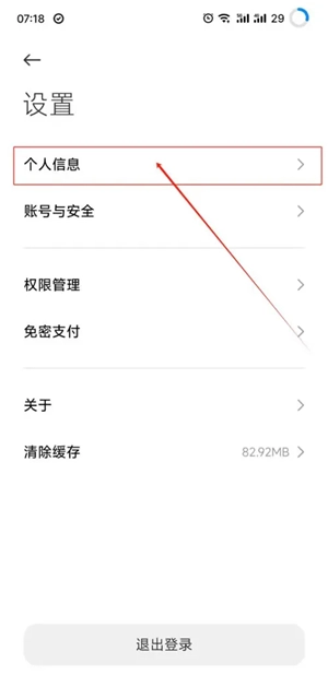 在设置页面上,选择【个人信息】选项