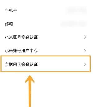 进入账户与安全页面后,找到并点击【车联网卡实名认证】这一选项。