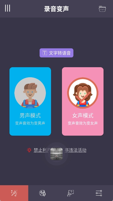 选择模式:进入首页后,在首页选择变声模式,比如“男生模式”“女生模式”等。