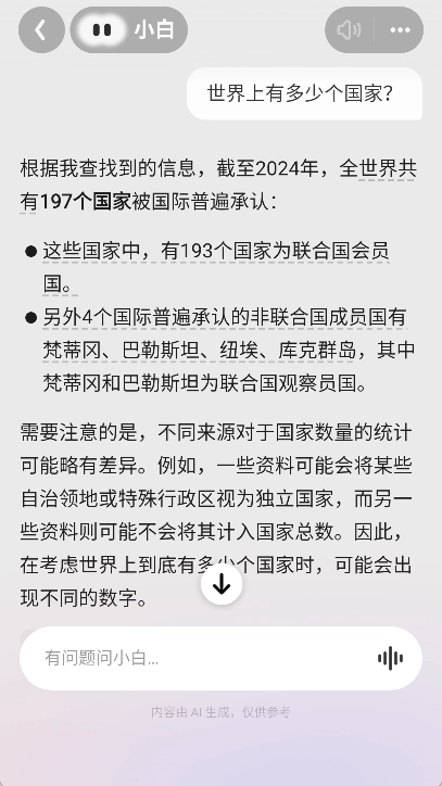 获取答案:问小白会依据用户输入的问题给出答案,并开展搜索信息、文本创作、逻辑推算等相关操作。