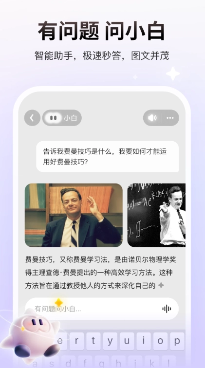 问小白是一款功能强大的AI智能助手软件,它借助个性化功能与AI生成内容的信息流推荐机制,助力用户在信息爆炸的时代高效筛选并获取有价值的内容。该软件支持语音输入,响应延迟极低,可依据用户的兴趣偏好与实际需求,推送独一无二的专属内容,真正实现了“千人千面”的个性化体验!