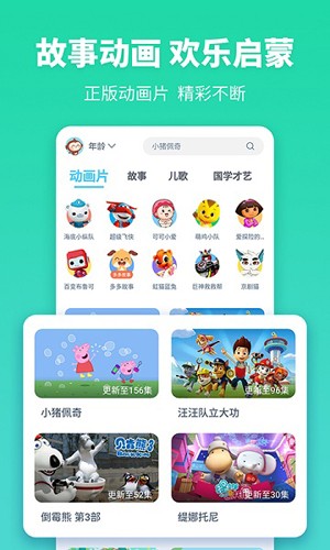汇聚各类生动有趣的动画,儿童故事,英文启蒙,儿歌童谣,世界童话,早教启蒙故事,唐诗宋词,成语故事,三字经等,让宝宝在儿歌故事和动画中,培养好习惯,好性格,提升宝宝各项能力。