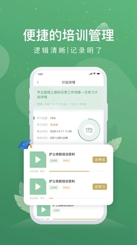 3、线上课程具备管理功能,支持上传课程(包括视频与课件)。护士能够学习这些课程,并且在课后可参与相关考试。